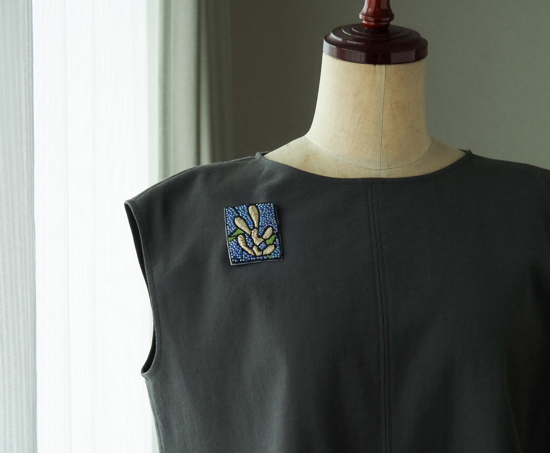 超強力マグネットで挟み込んで使うタイプの手刺繍ブローチです。