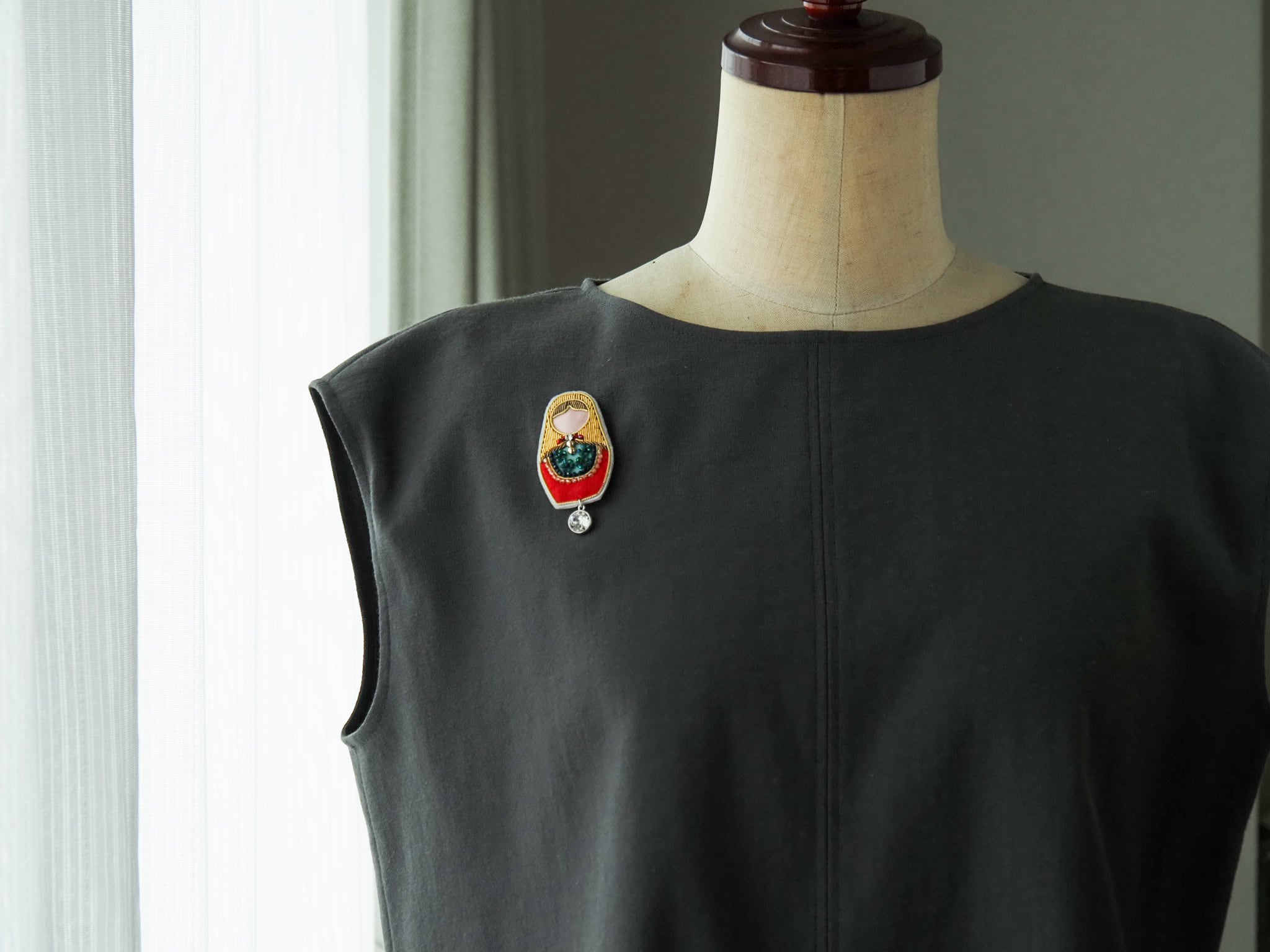 超強力マグネットで挟み込んで使うタイプの手刺繍ブローチです。