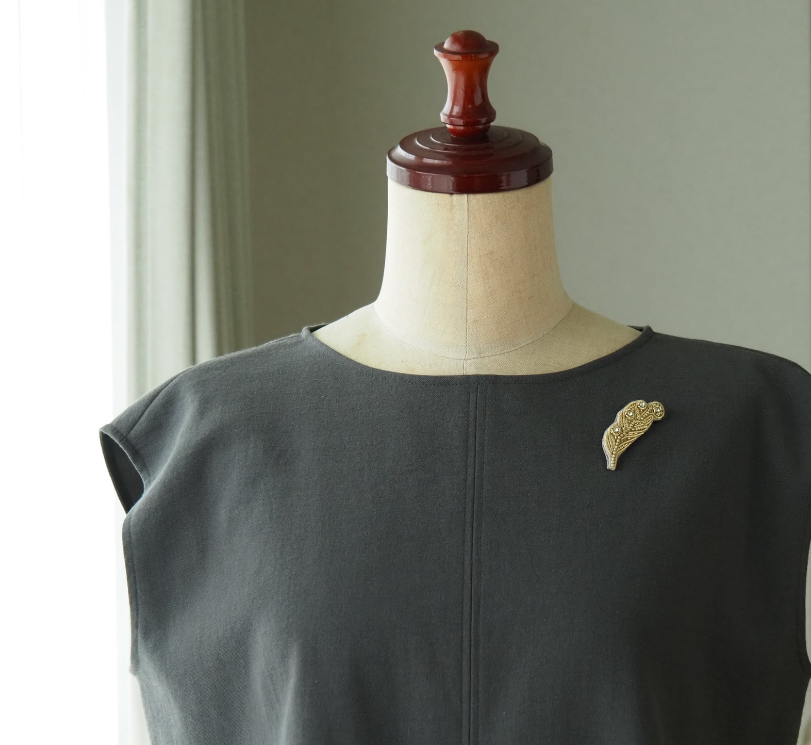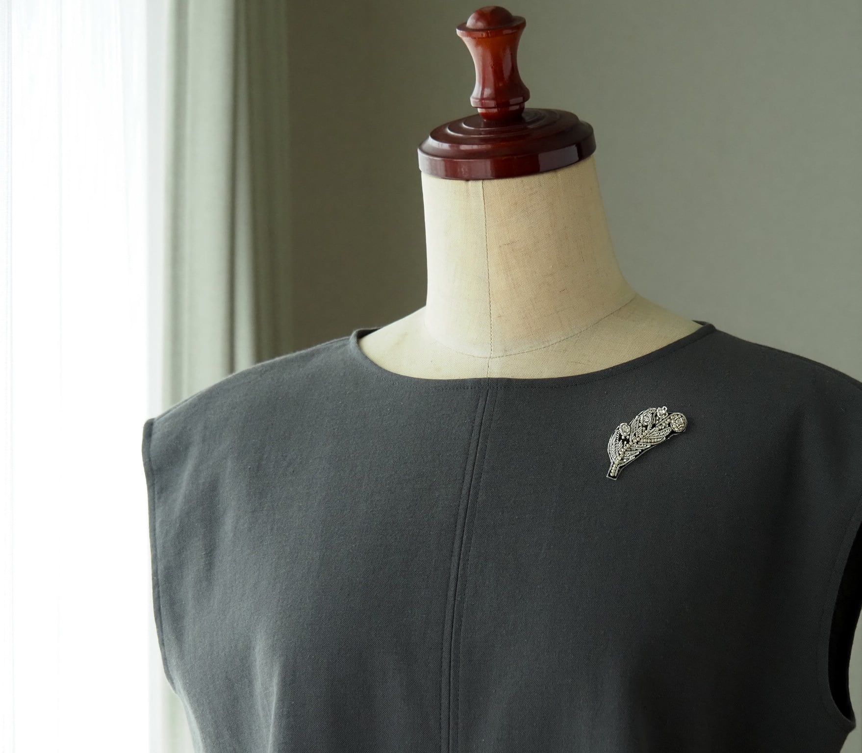 小さめのサイズ感で、薄手のブラウスやジャケット、コートの襟元にさりげなく華やかさをプラスします。日常のコーディネートに気軽に取り入れていただけます。