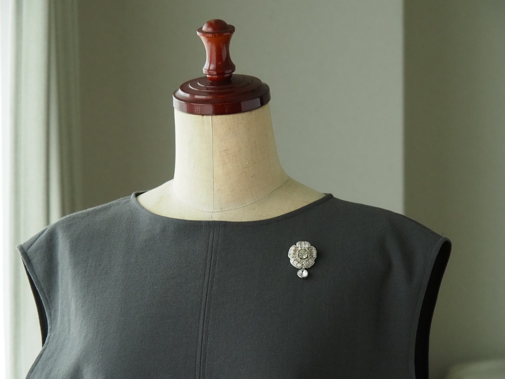 小さめのサイズ感で、薄手のブラウスやジャケット、コートの襟元にさりげなく華やかさをプラスします。日常のコーディネートに気軽に取り入れていただけます。